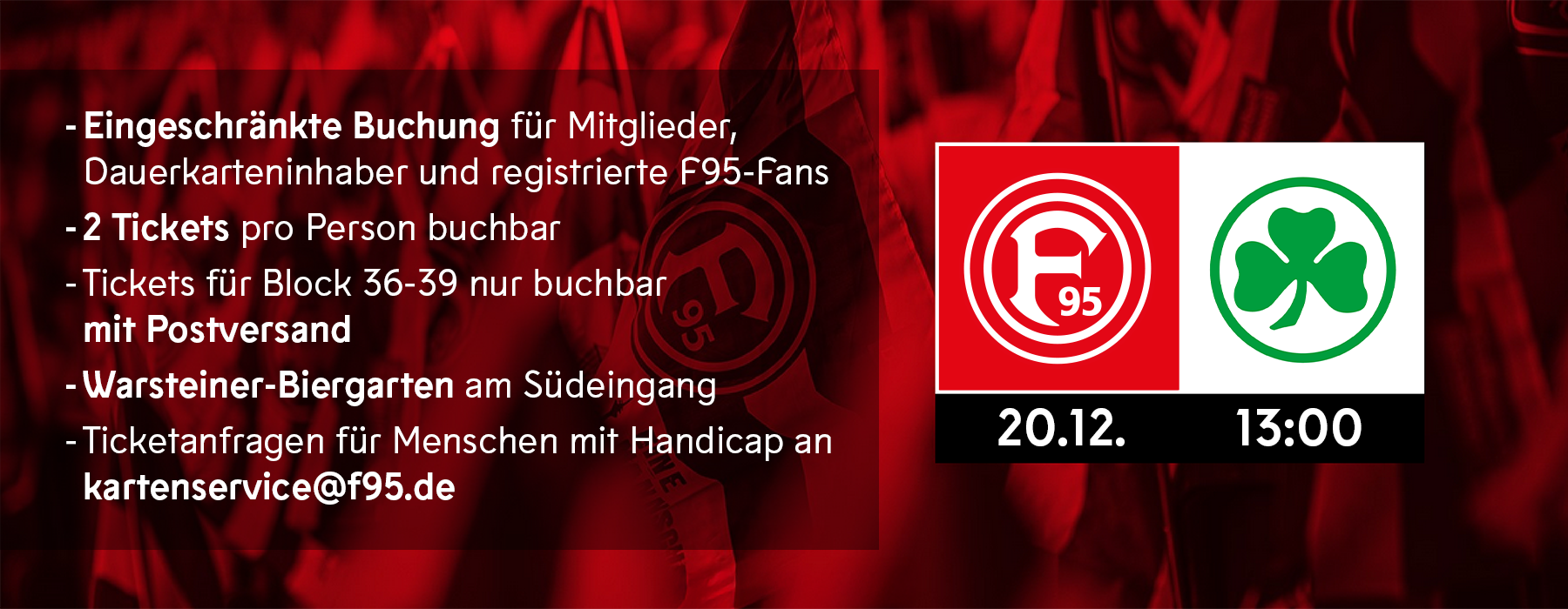 Südvergabe und Zweitmarkt nur für Mitglieder, Dauerkarteninhaber und F95-Fans buchbar!